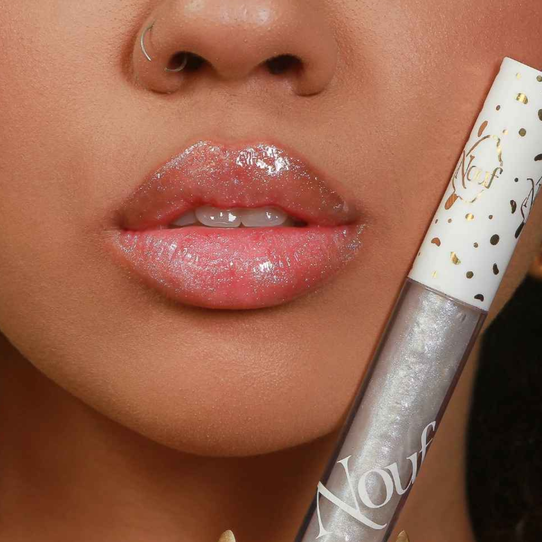 Gloss Gelateria Nouf cor Creme, viralizado nas redes sociais pelo efeito das partículas de brilho na luz!