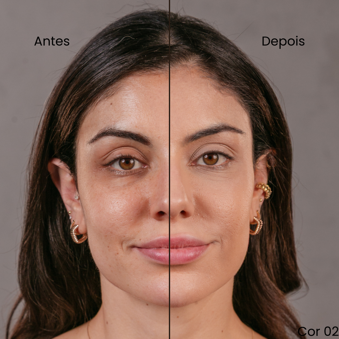 • Acabamento e natural: A base entrega cobertura uniforme com toque matte confortável e permite a construção de camadas.