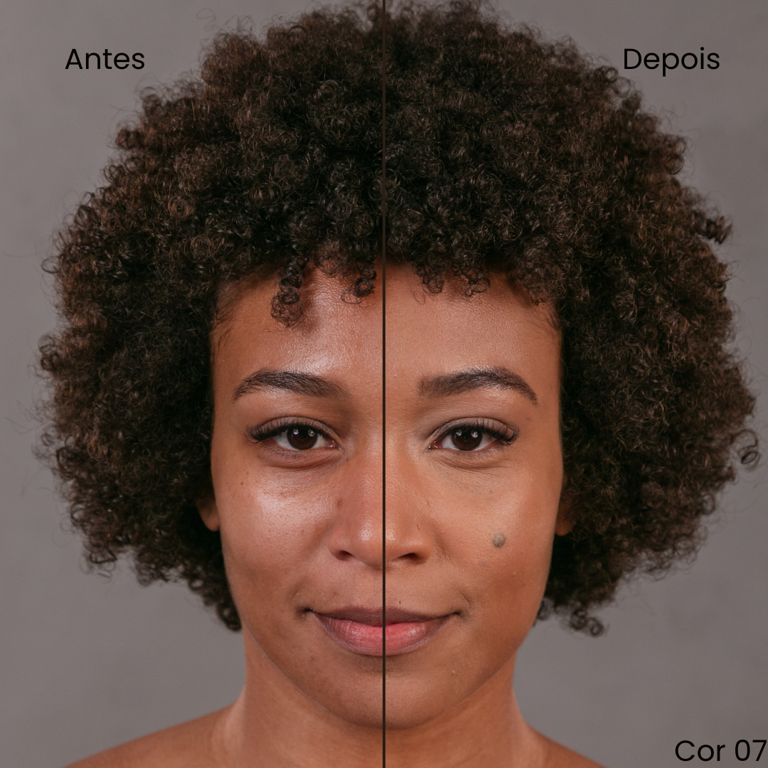 - Acabamento e natural: A base entrega cobertura uniforme com toque matte confortável e permite a construção de camadas.